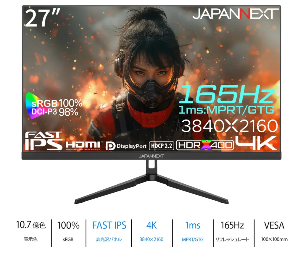 🖥️ JAPANNEXT JN-IPS27G165U 実機レビュー | 4K×165Hz IPSで5万円台の最強コスパモニター